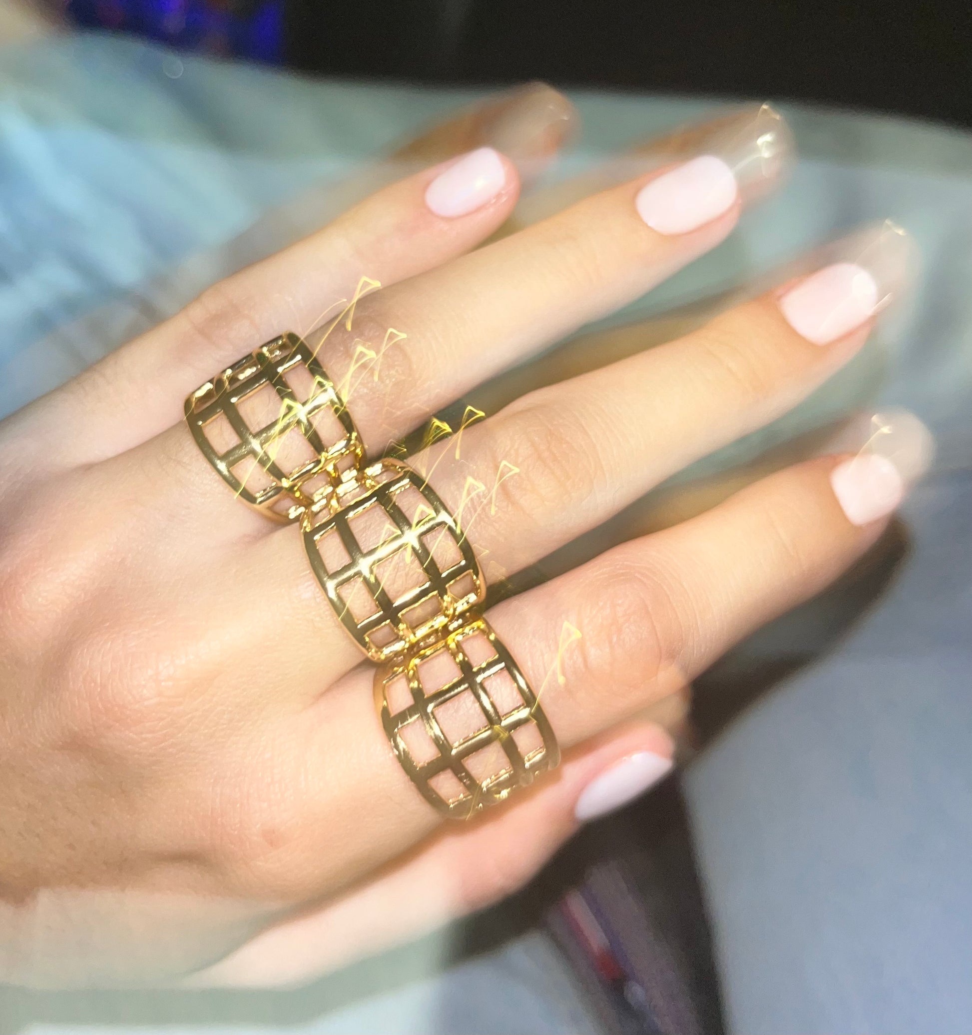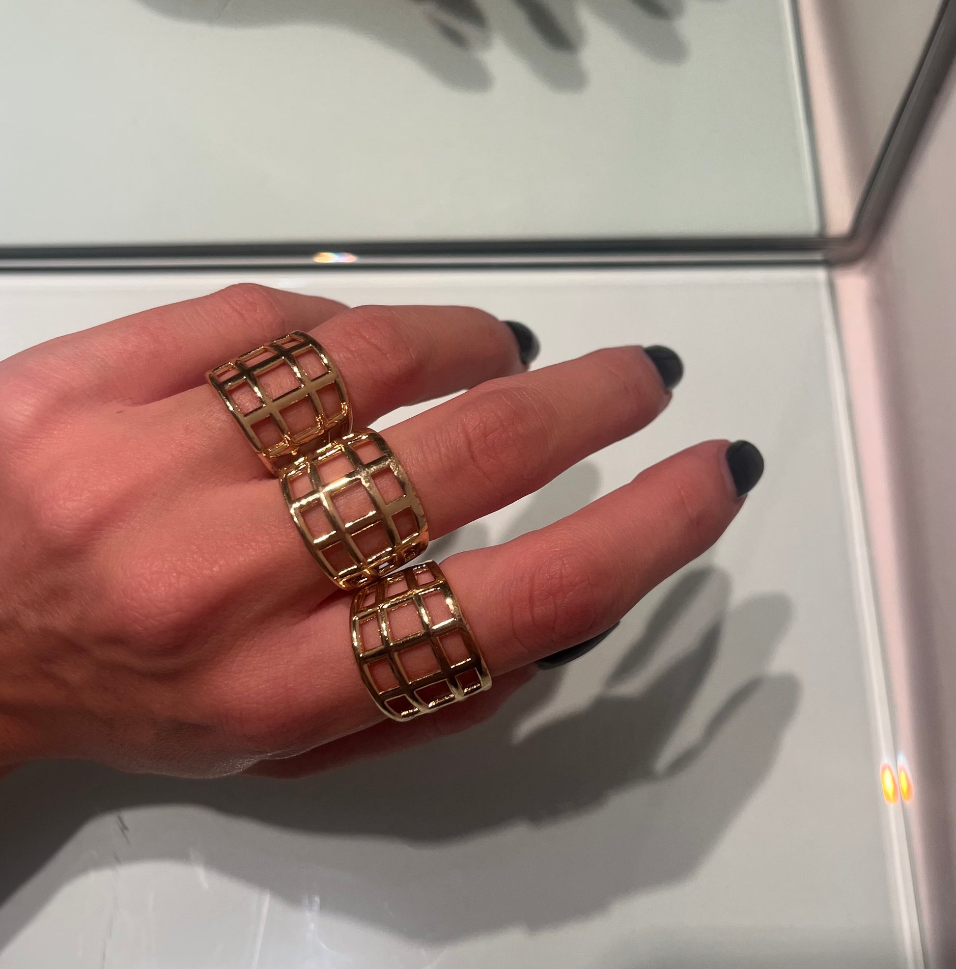 tris di anelli oro a forma di gabbia regolabili da indossare su indice, medio e anulare