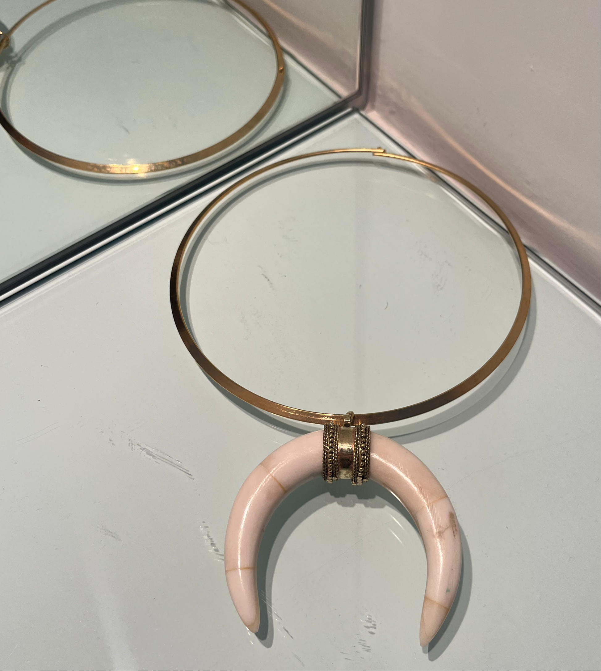 Collare oro rigido con ciondolo Corno in osso bianco.