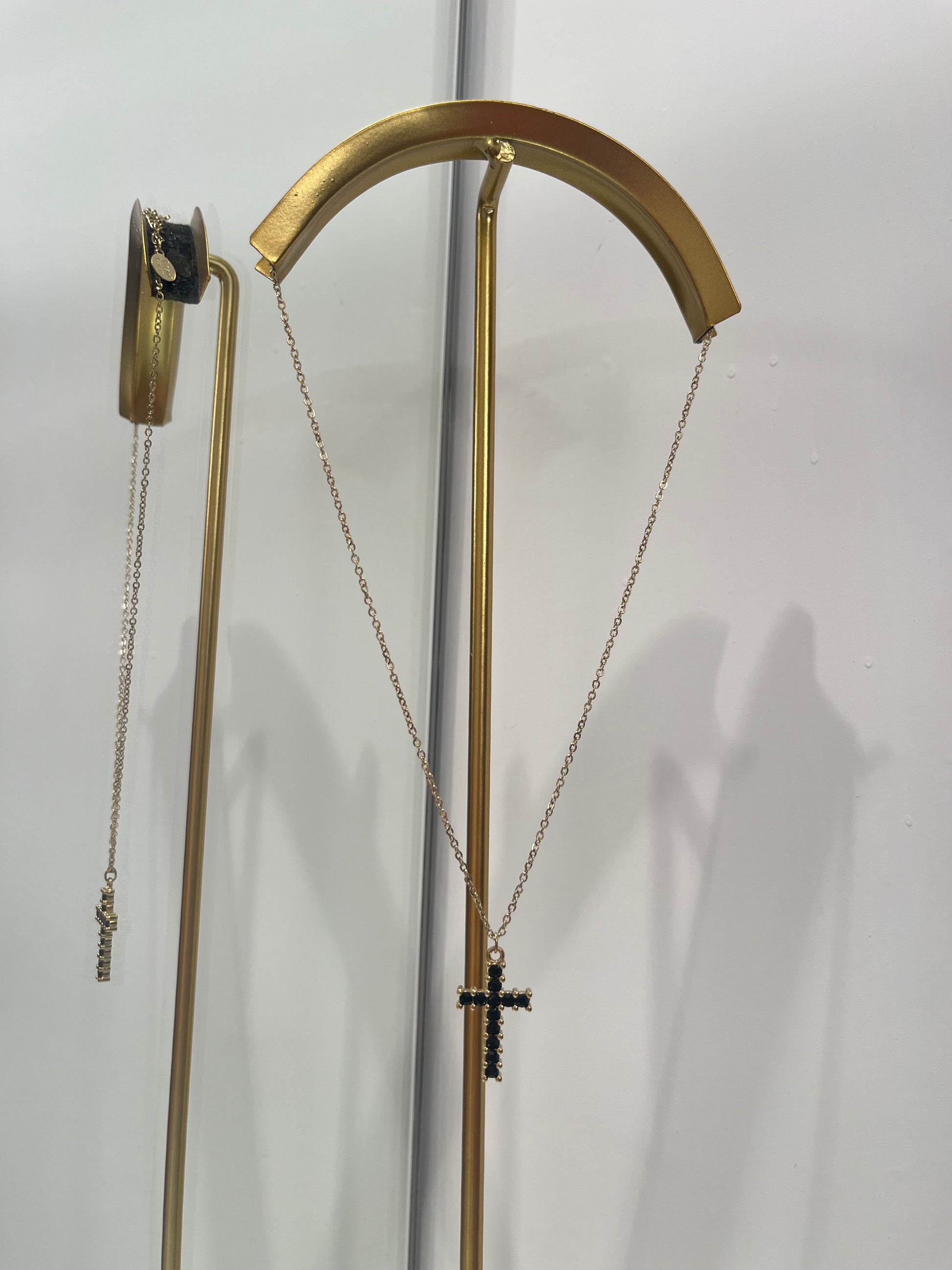 Collana color oro con ciondolo Croce con pietre nere