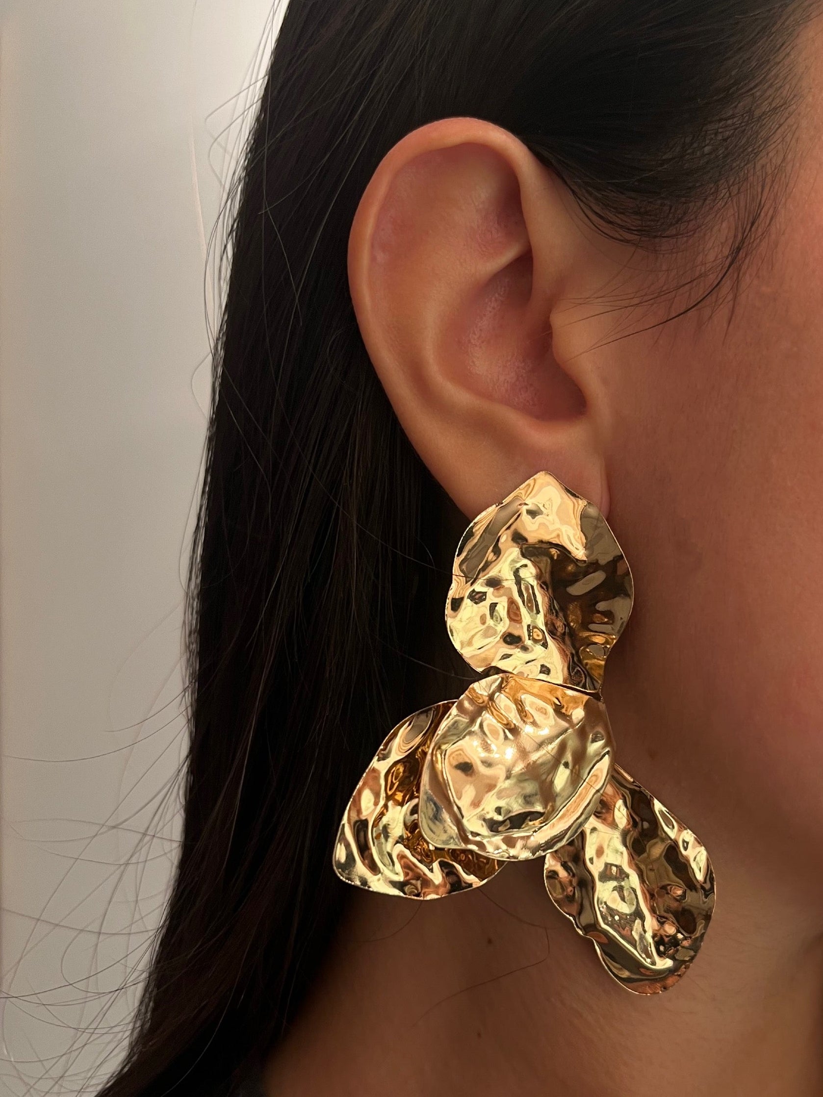 Orecchini leggeri in acciaio colore oro con chiusura a farfallina e a forma di petalo dorato