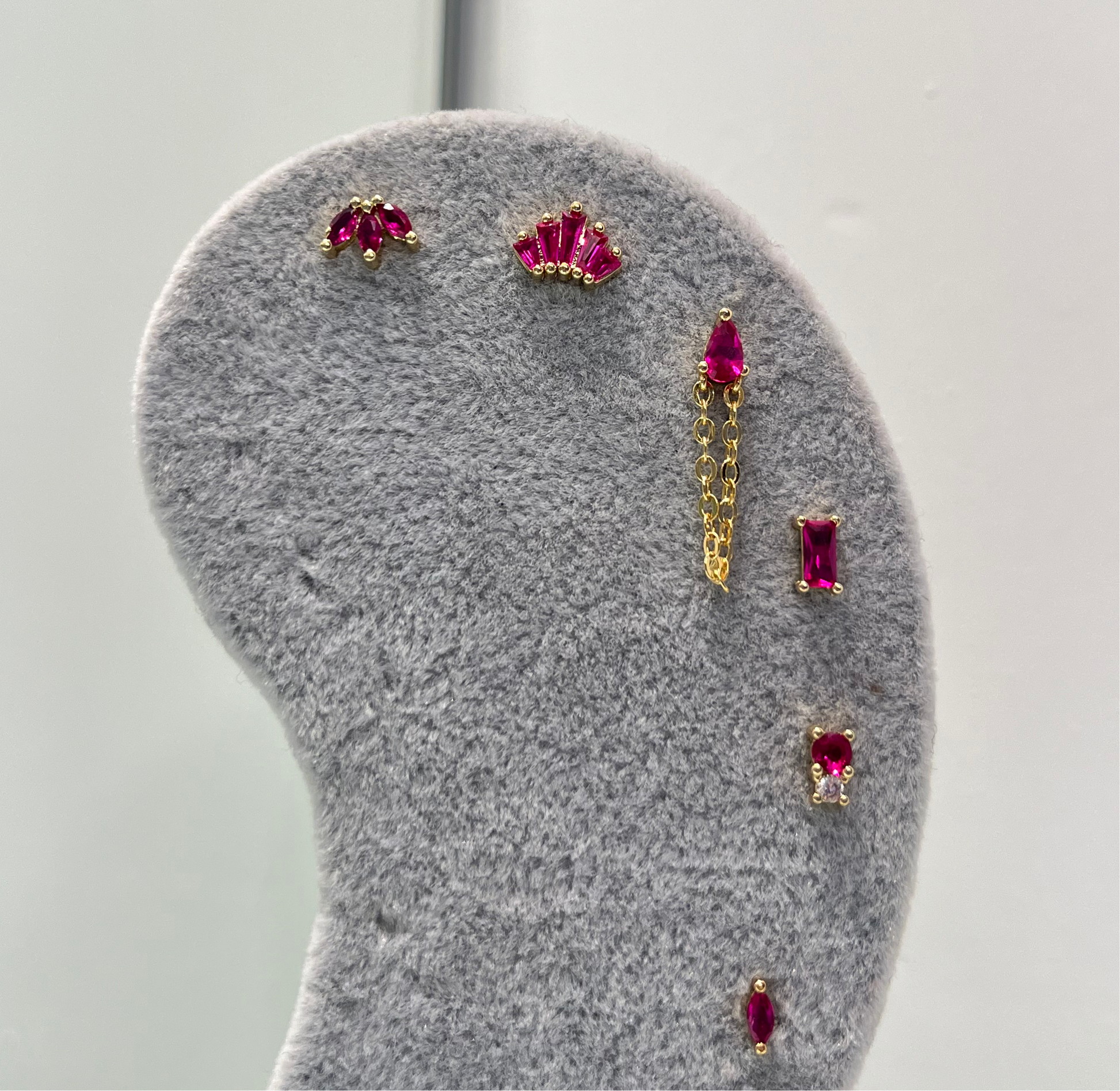 Set di orecchini con chiusura a farfallina per tutti i piercing dell’orecchio, oro con pietre rosa (zirconi)