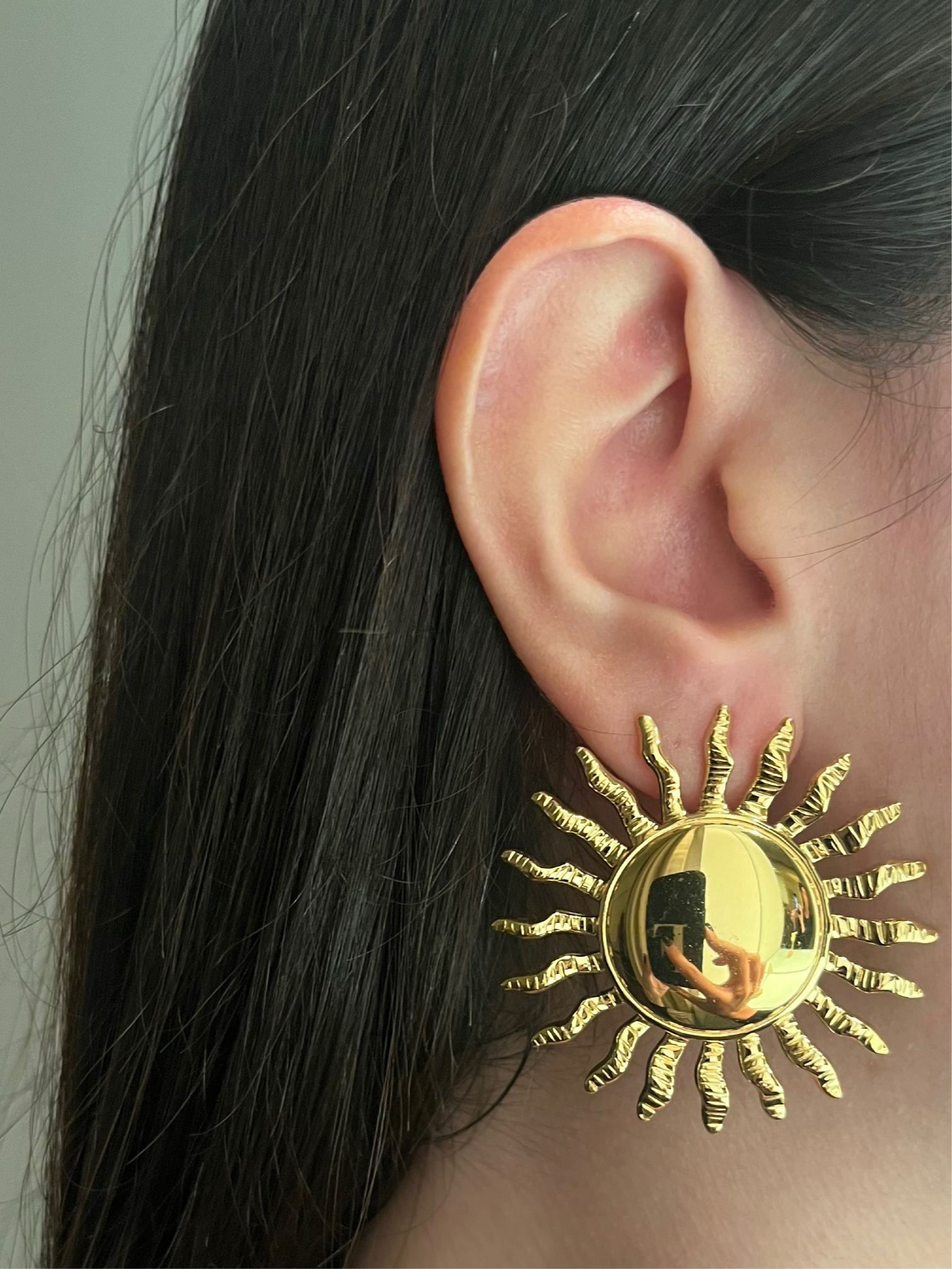 Orecchini oro a forma di Sole con chiusura a farfallina
