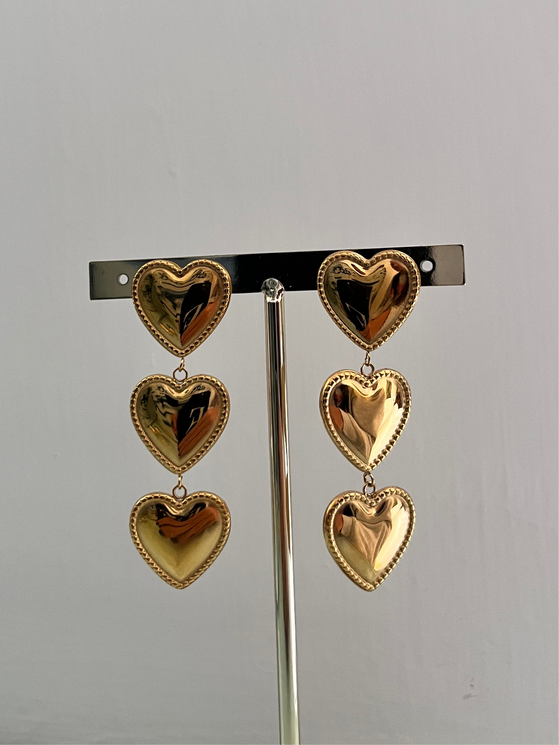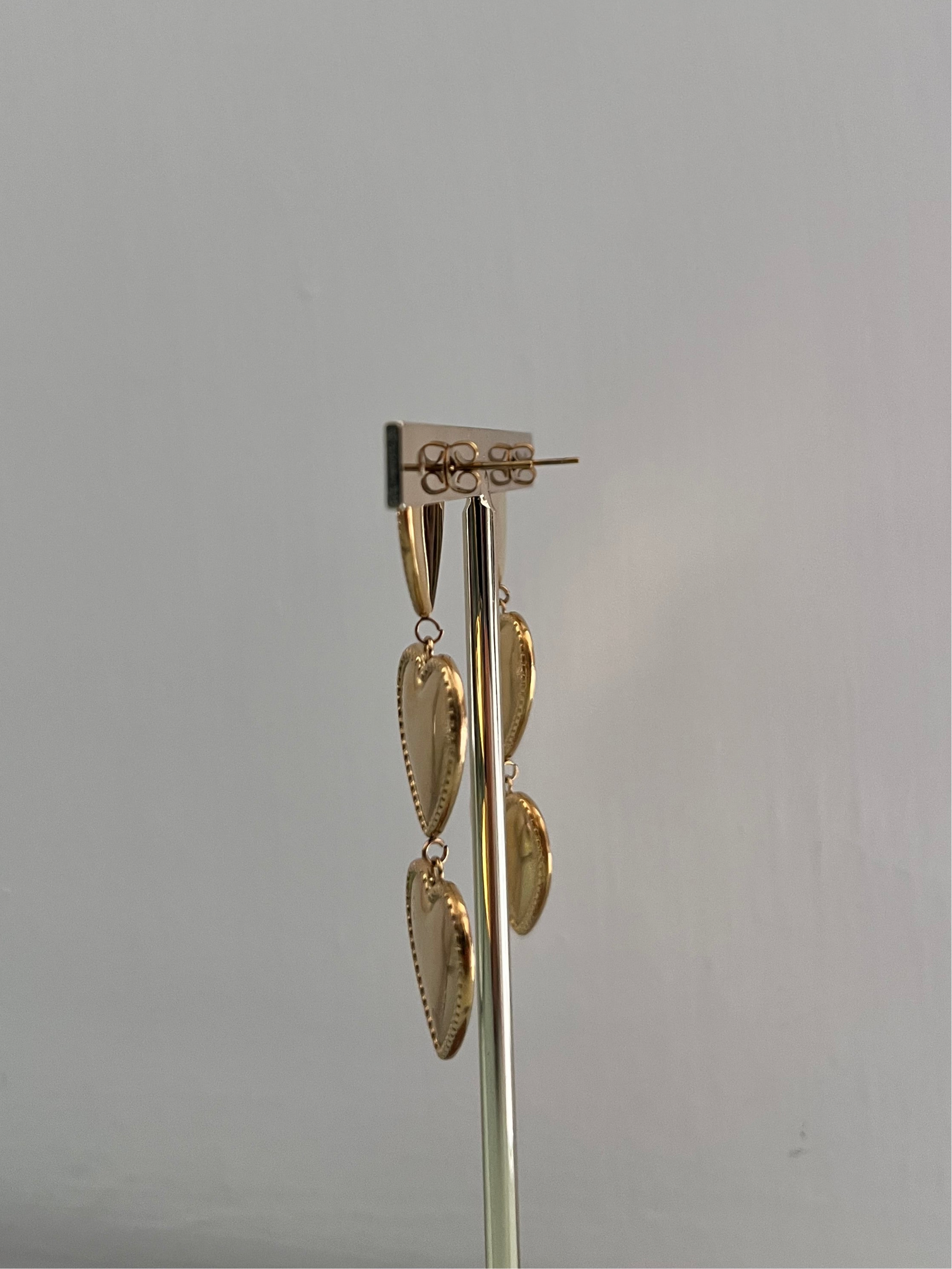 Orecchini pendenti con tre cuori oro e chiusura a farfallina