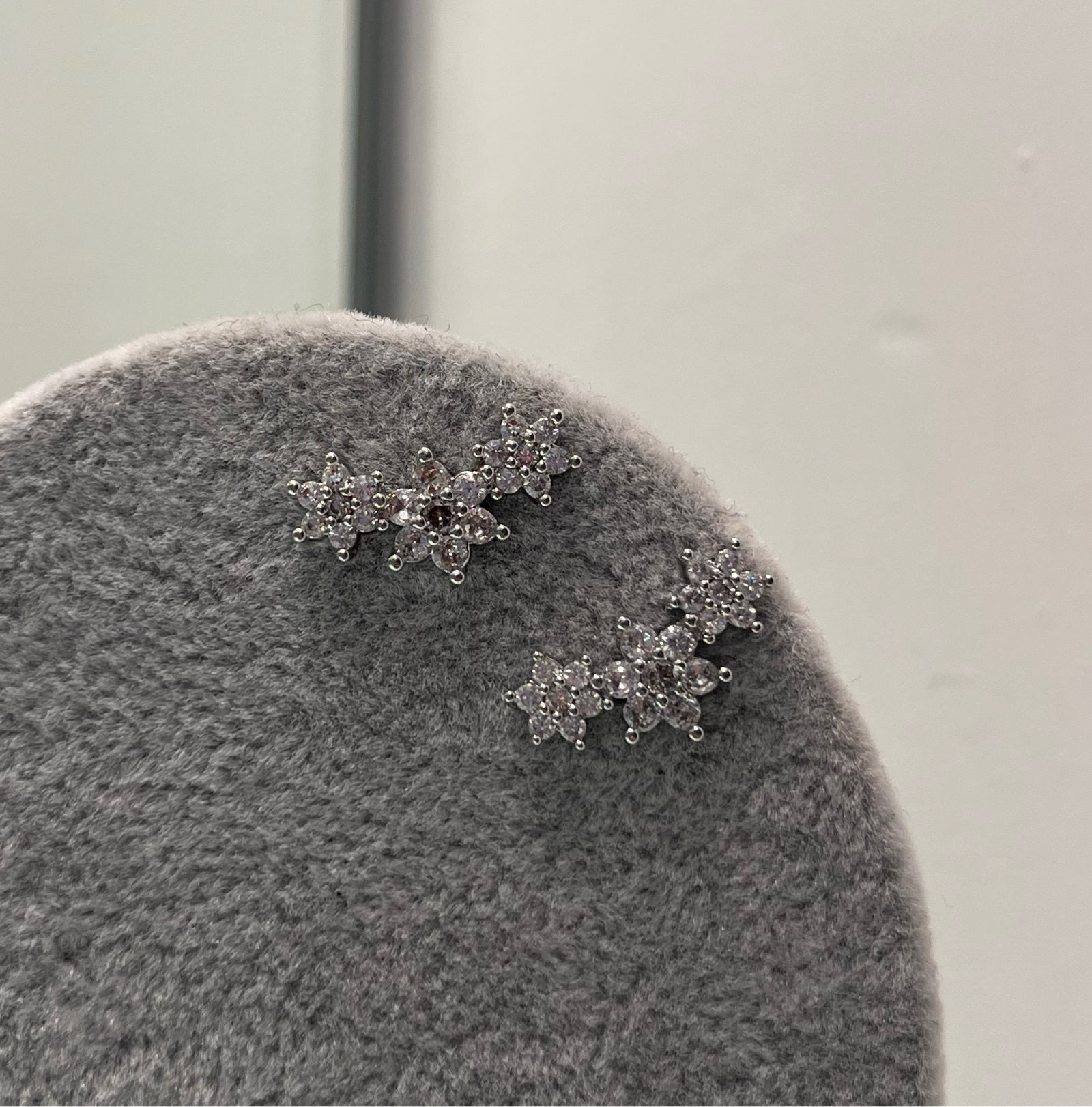 Orecchini argento per il lobo a forma di fiore con strass silver